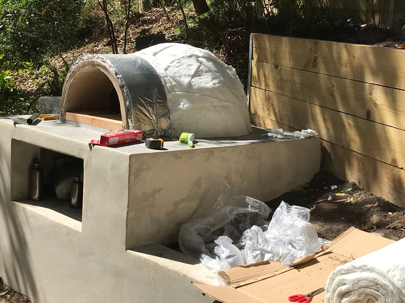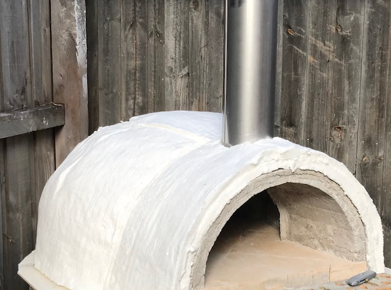 Add a layer of ceramic fibre blanket over the dome. This locks in heat and gives your oven that long, slow burn it needs for baking bread and slow-cooking meats.