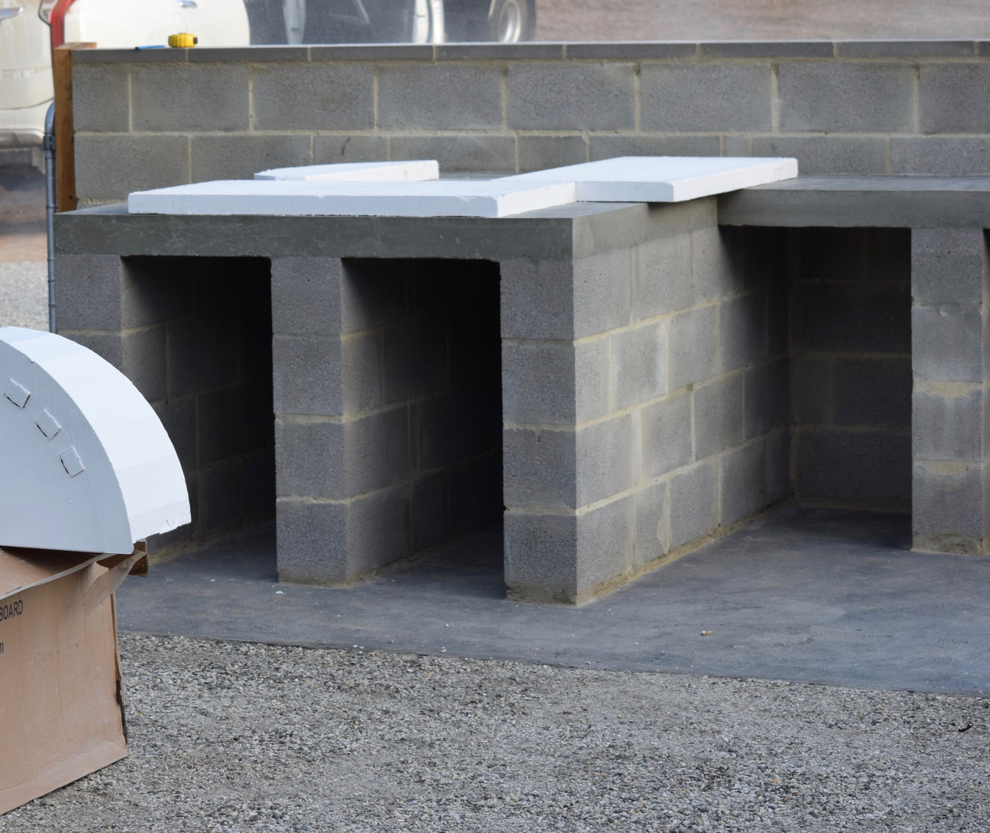 Lay down a 25–50mm calcium silicate board. This insulation keeps heat in the cooking surface where it belongs. Cut it to size to match your base and get ready to build up from there.